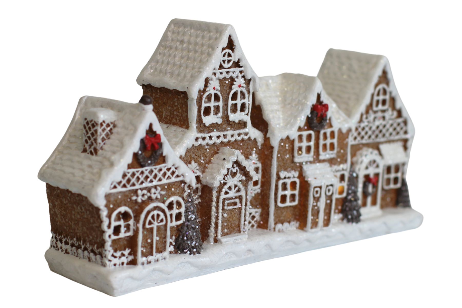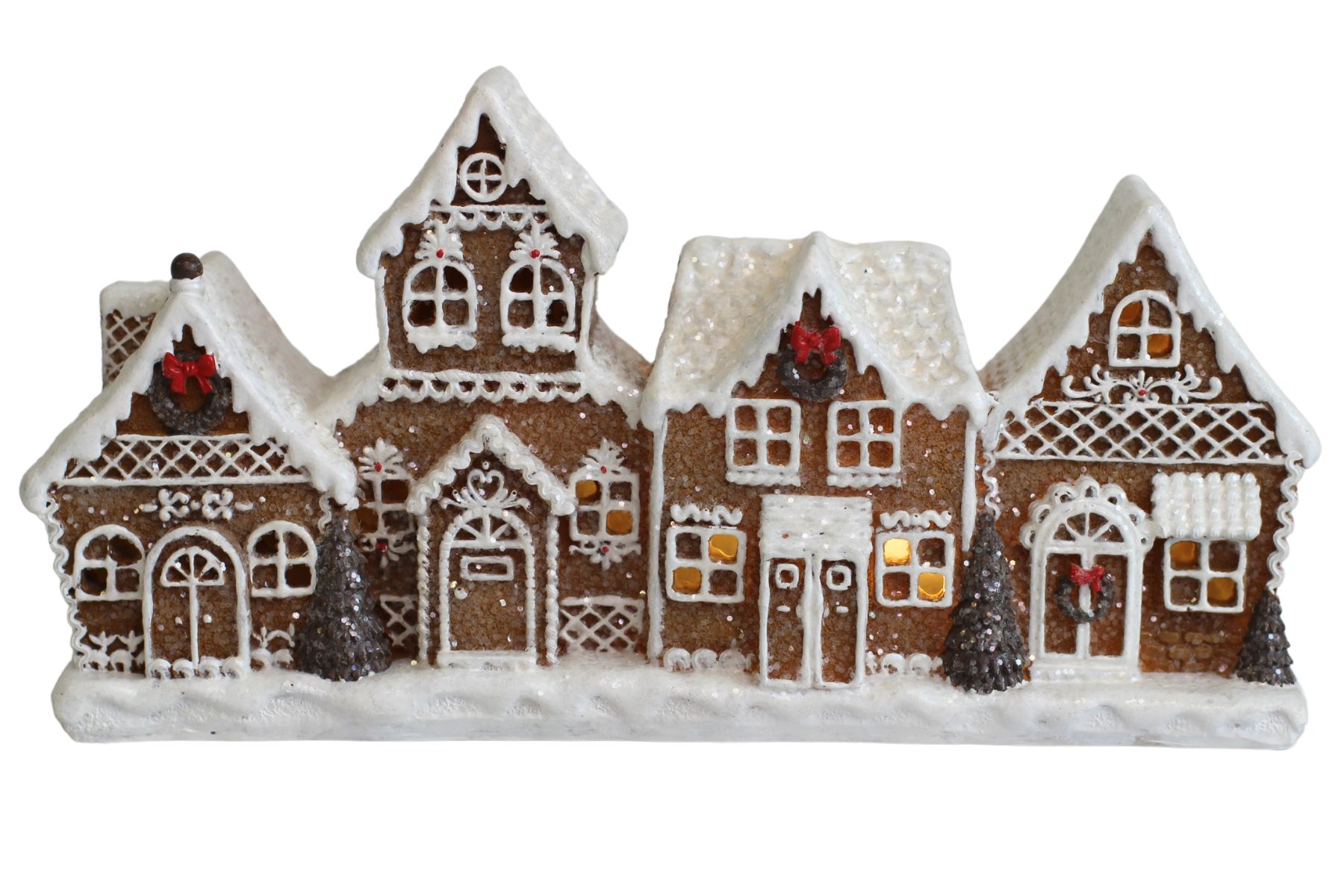 Perníková dedinka s LED svetielkami je nádherná vianočná dekorácia, ktorá dodá vášmu domovu čarovnú vianočnú atmosféru. Dekorácia je súčasťou perníkovej kolekcie a je ideálna ako darček.