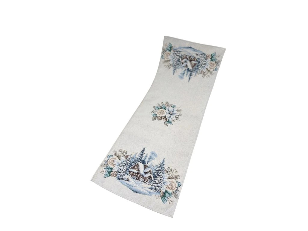 Biely behúň s vianočným motívom je ideálny na ozdobenie vášho interiéru počas Vianoc. Krásny motív vianočnej zimnej krajiny s jemným zátiším vytvorí atmosféru pohody. Behúň je príjemný na dotyk .
