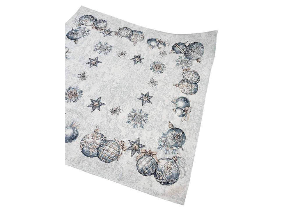 Bielo modrý obrus s motívom vianočných gúľ je ideálny na ozdobenie vášho interiéru počas Vianoc. Krásny motív s vianočných gúľ vytvorí atmosféru pohody. Obrus je príjemný na dotyk .
