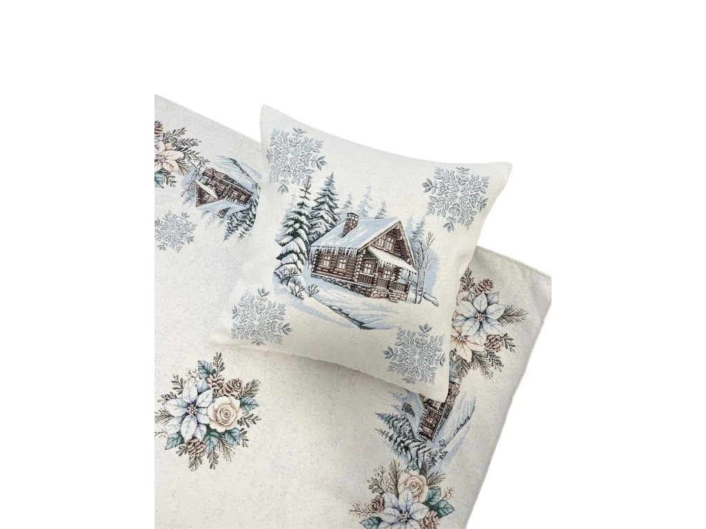 Biely poťah na vankúš s vianočným motívom je ideálny na ozdobenie vášho interiéru počas Vianoc. Krásny motív vianočnej zimnej krajiny s jemnými snehovými zátiším vytvorí atmosféru pohody. Poťah vankúša je príjemný na dotyk a je odnímateľný pomocou zipsu.