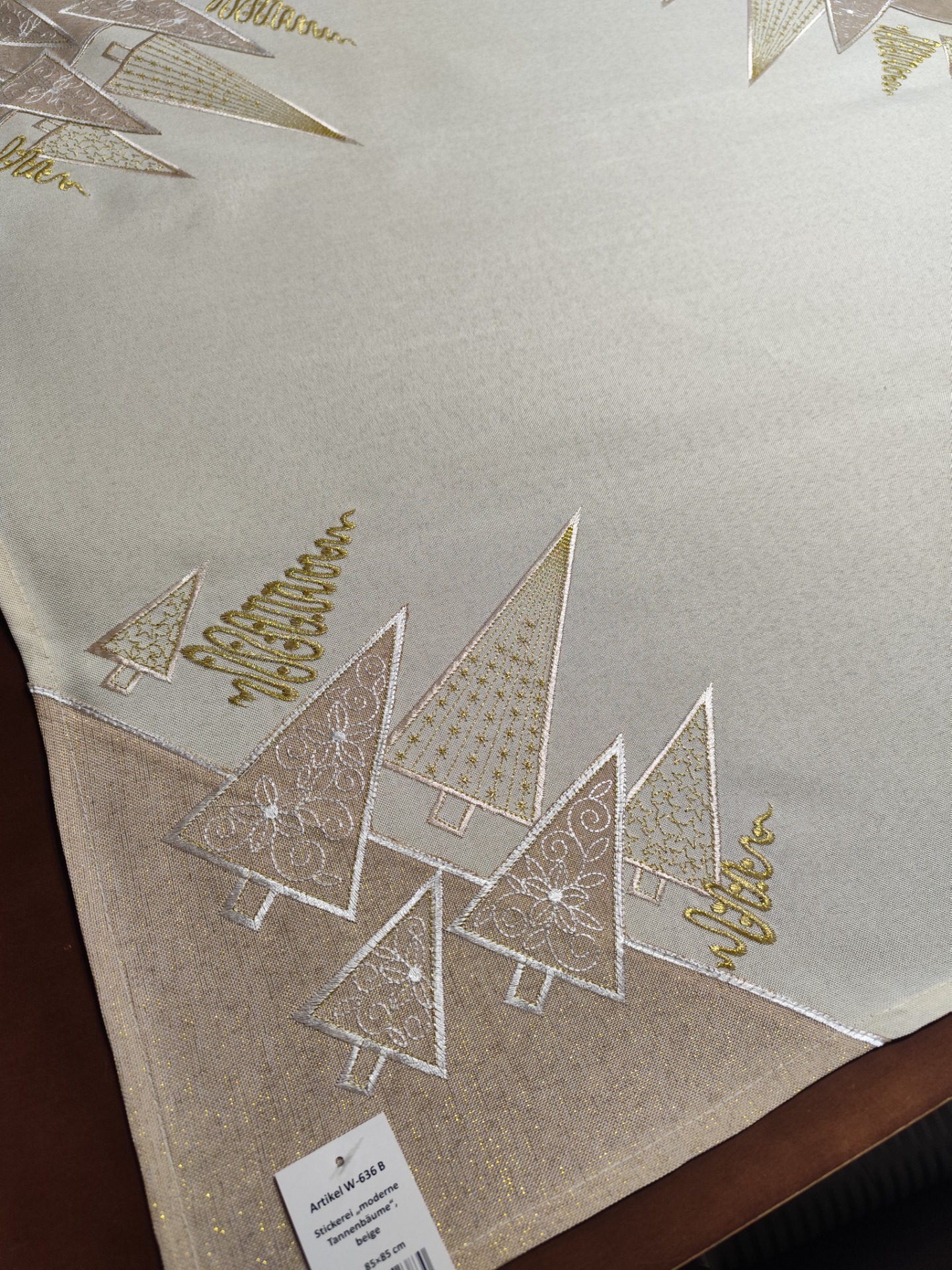 Luxusný textilný obrus vyšívaný metalickou niťou na krémovo zlatom podklade dodá vášmu vianočnému prestieraniu rozprávkovú sviatočnú atmosféru. Výšivka je po celom obvode obrusa. V ponuke aj dekoratívnu štólu 40cm x 140cm