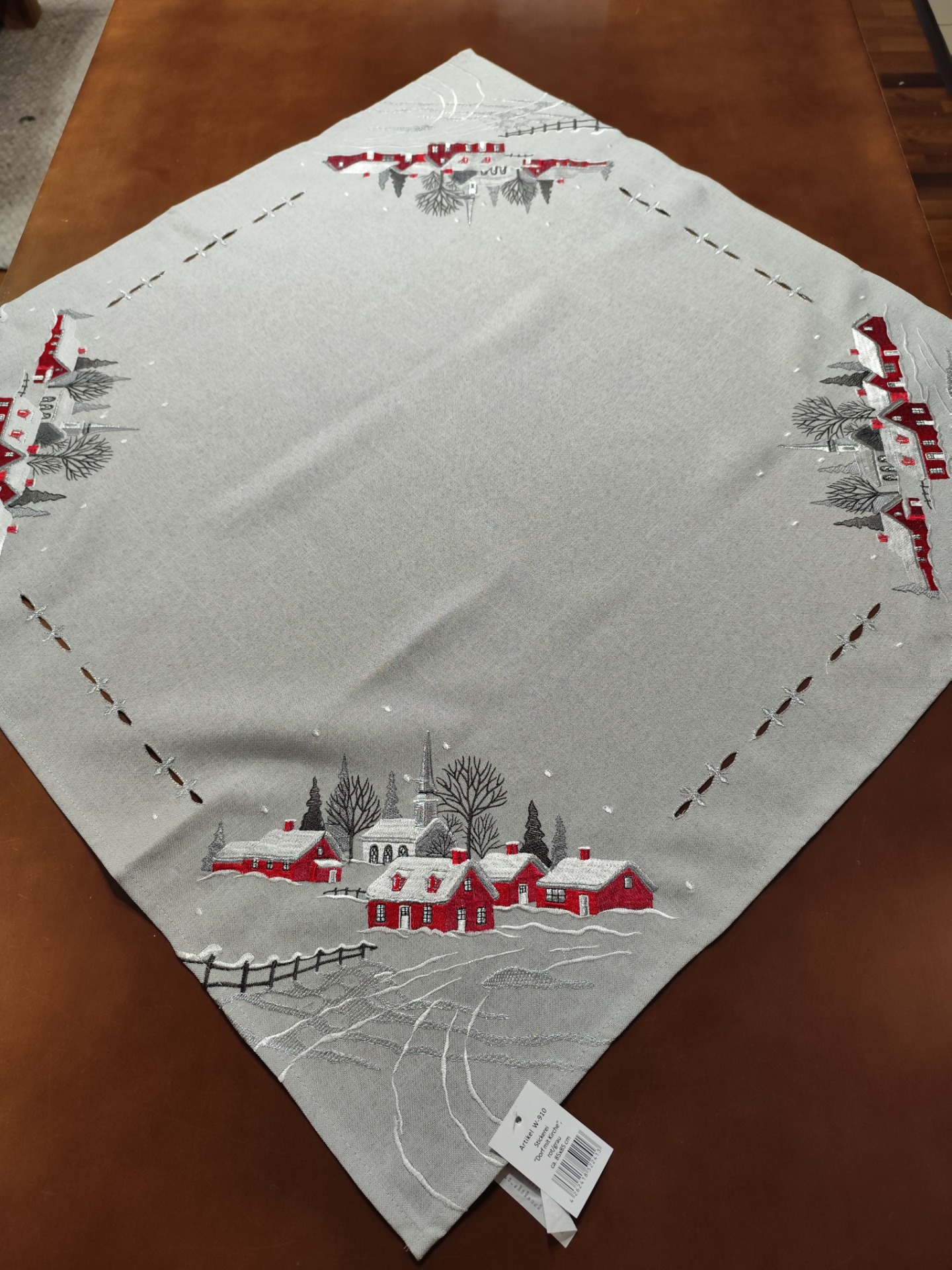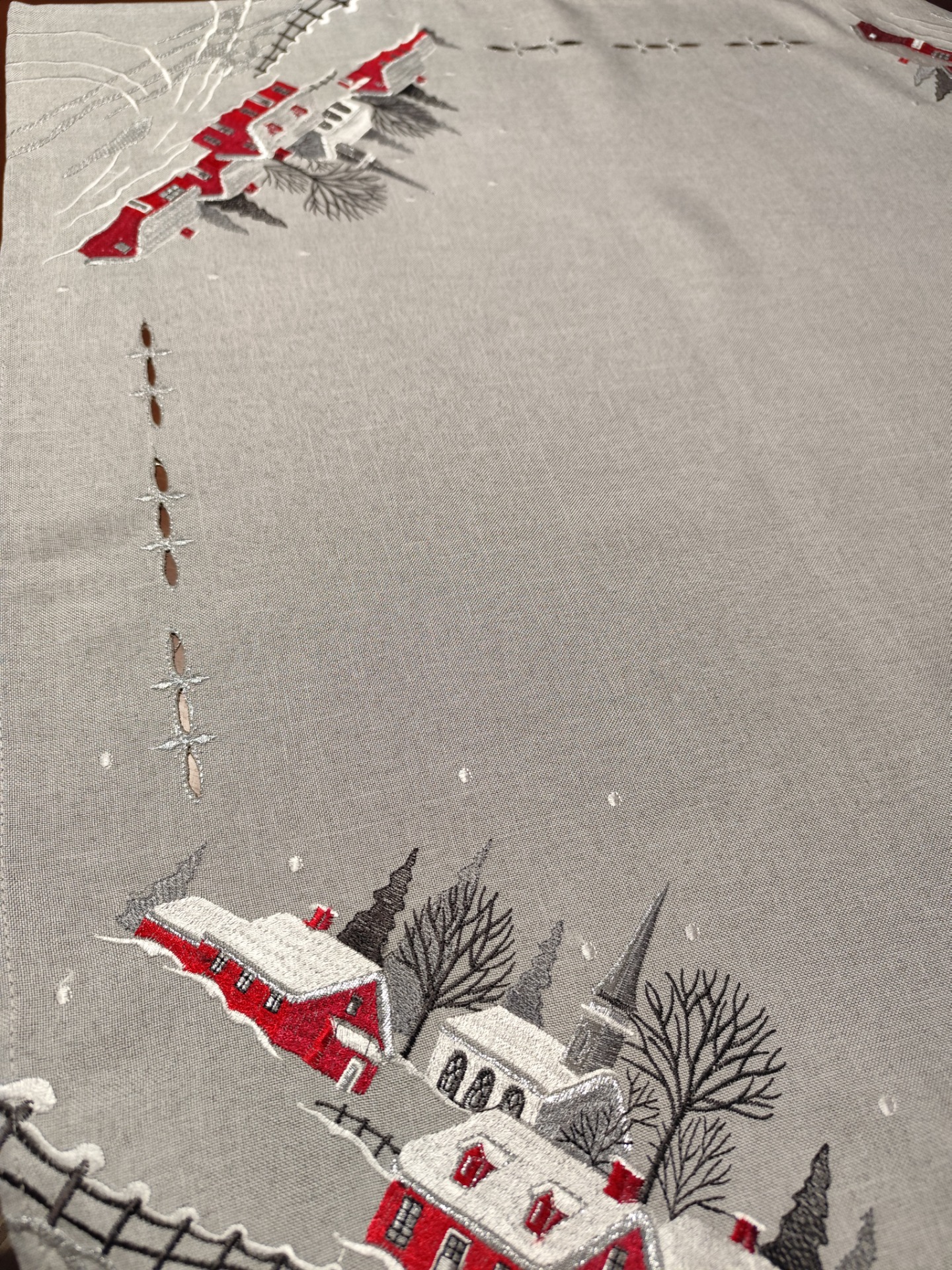 Luxusný textilný obrús vyšívaný metalickou niťou na sivom podklade dodá vášmu vianočnému prestieraniu rozprávkovú sviatočnú atmosféru. Výšivka je po celom obvode obrusa. V ponuke aj dekoratívnu štólu 40cm x 140cm