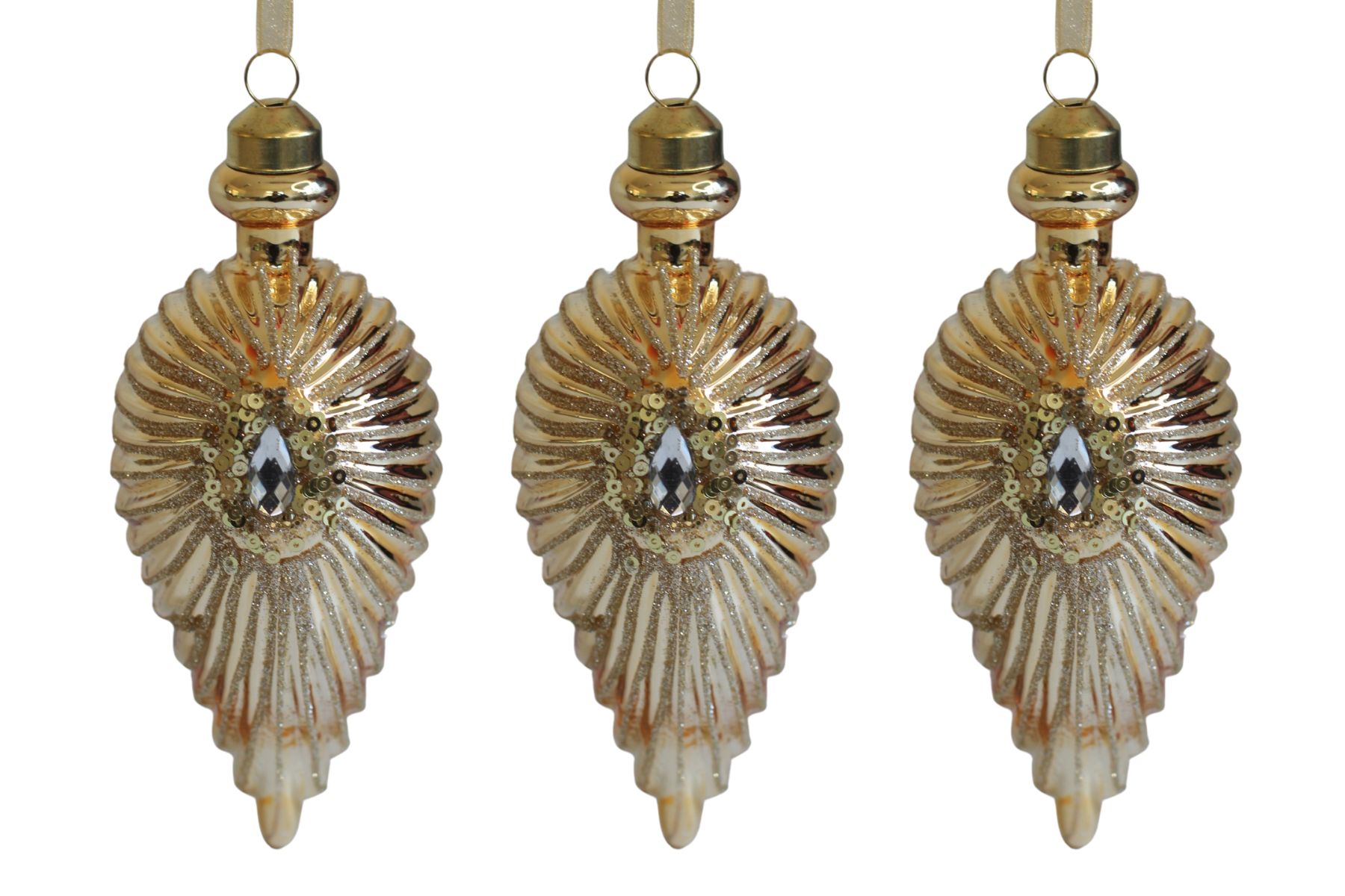 Nádherné sklenené vianočné ozdoby s ornamentom budú neprehliadnuteľnou ozdobou každého vianočného stromčeka. Zlatá farba patrí k luxusným Vianociam.